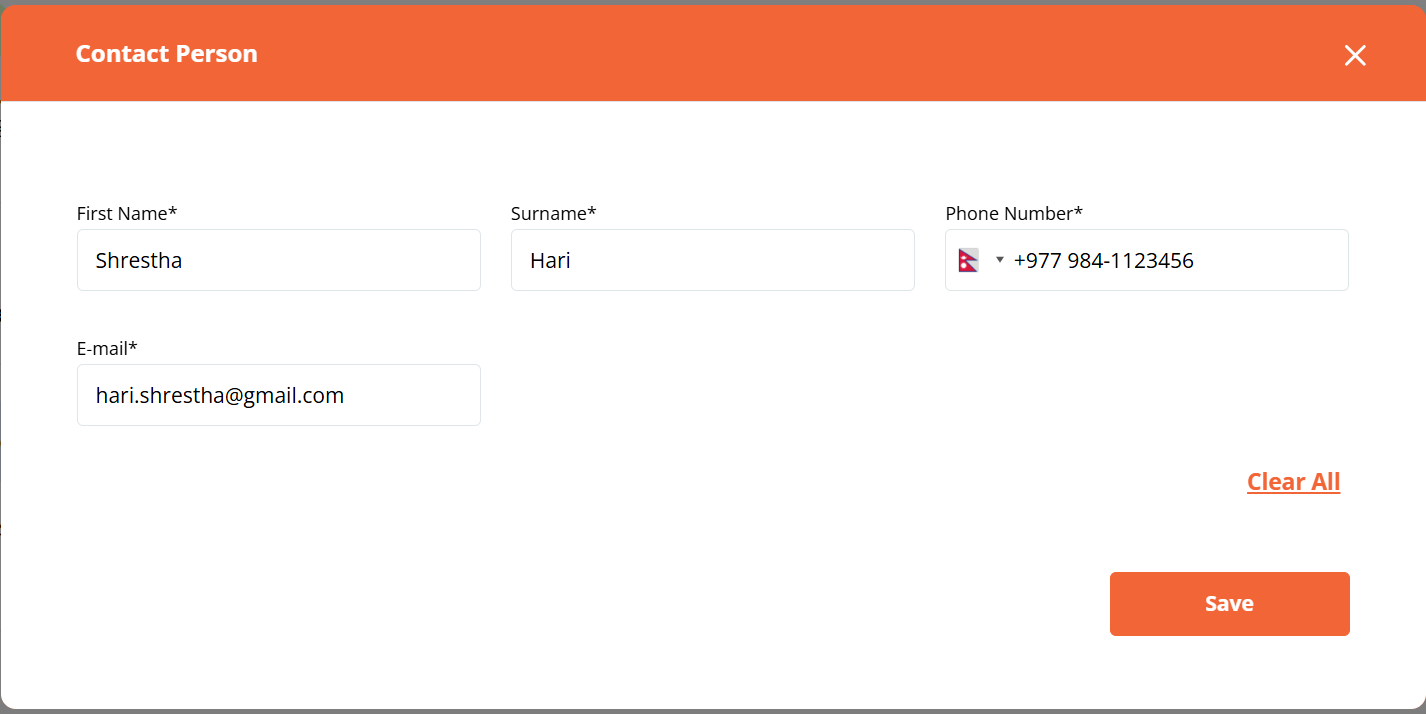 Step 2: After accessing the manage booking page, Contact Person details will be displayed at the end of the page.