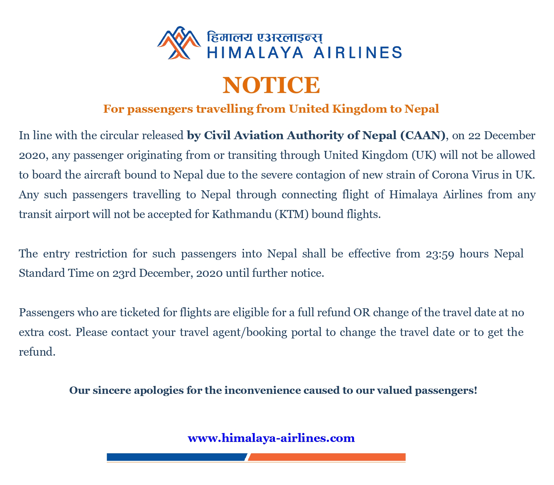 Important Notice for Dhaka - Kathmandu - Dhaka Flights