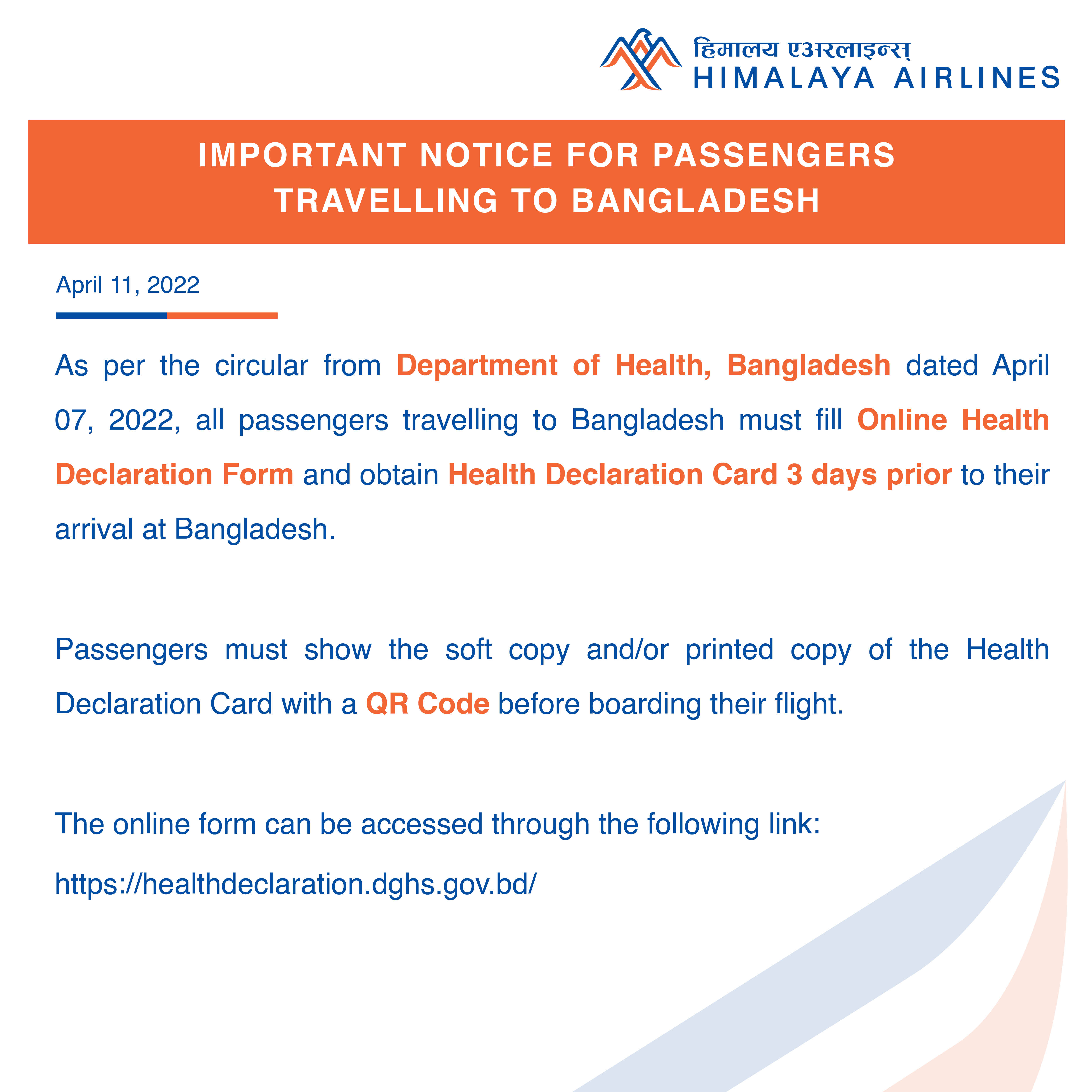 Important Notice For Passengers Travelling To Bangladesh
