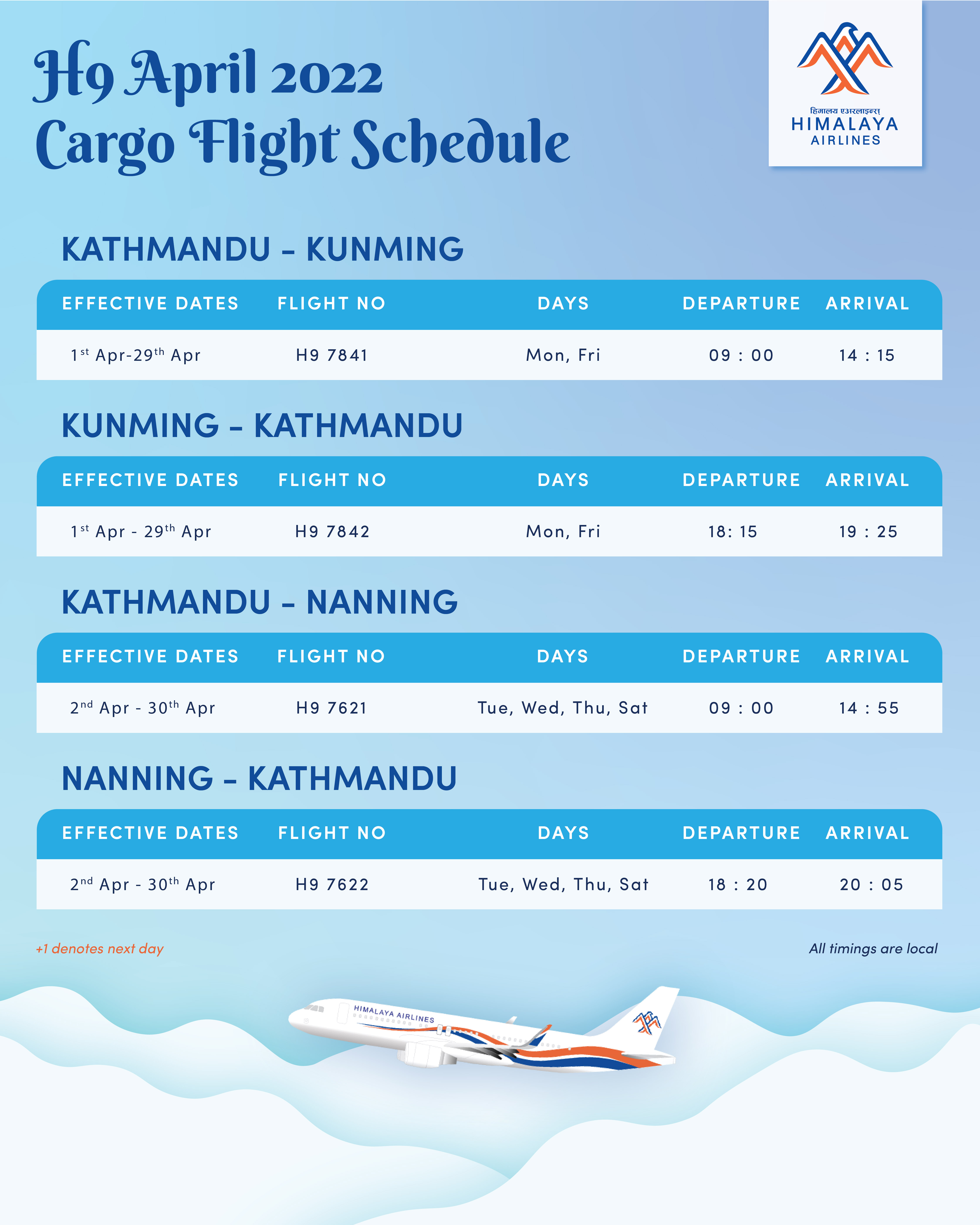 H9 April 2022 Cargo Flight Schedule