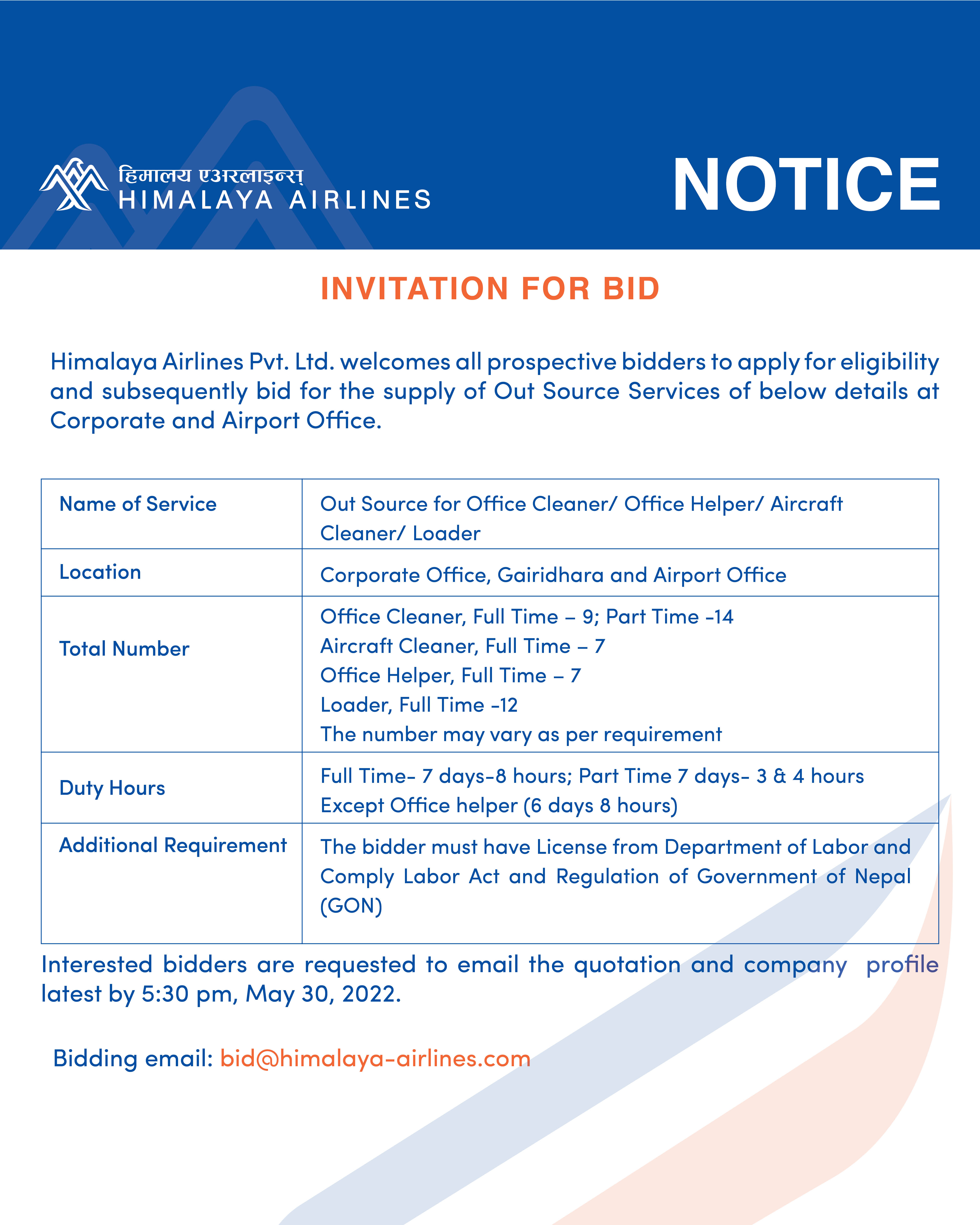 Invitation to Bid for Out Source Services