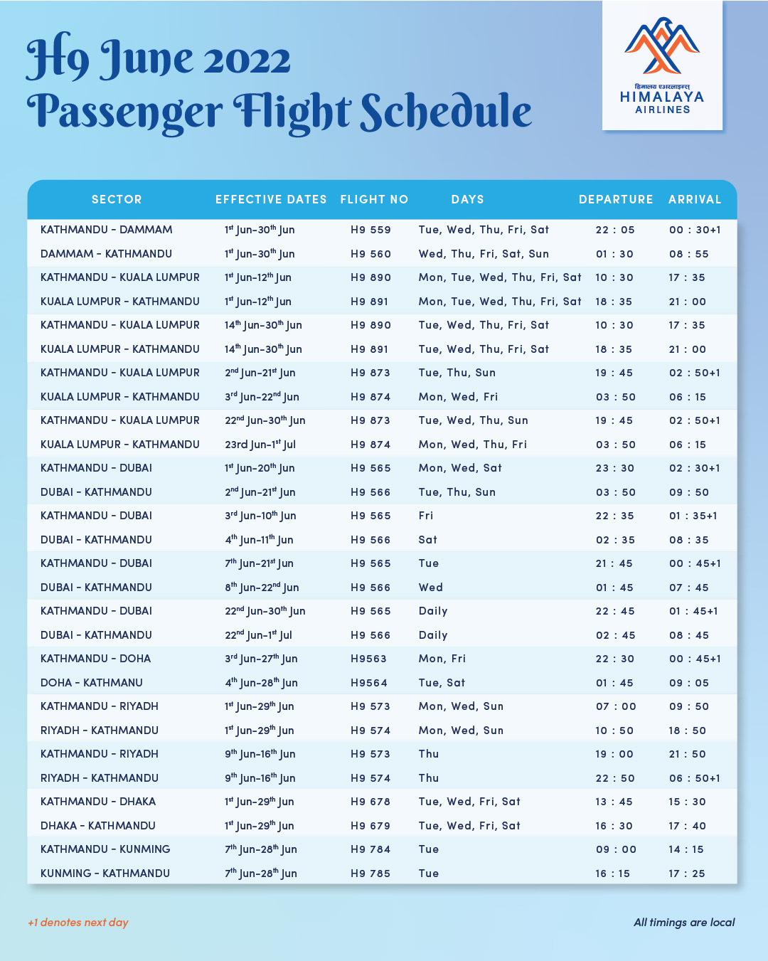 H9 June 2022 Passenger Flight Schedule