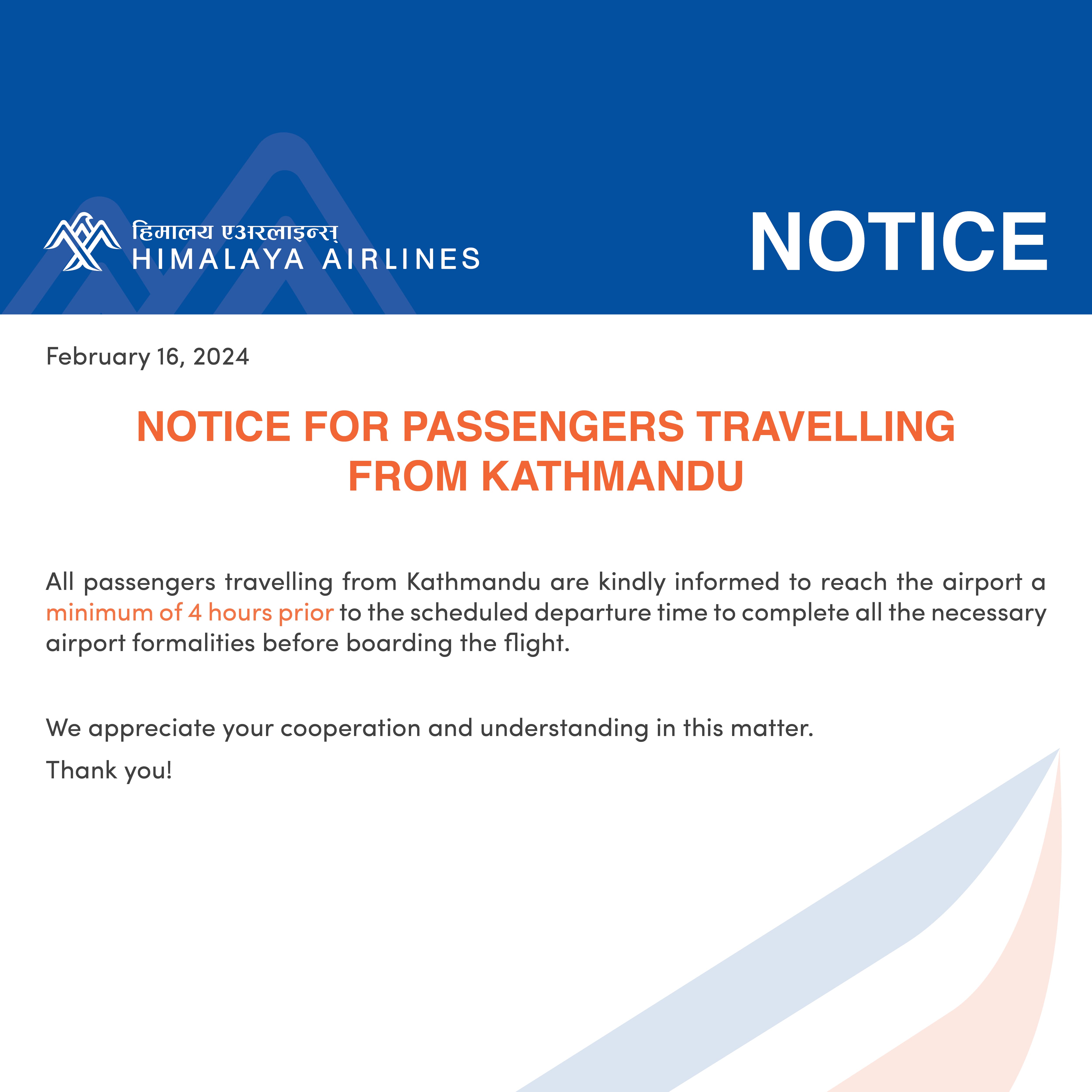 NOTICE FOR PASSENGERS TRAVELLING FROM KATHMANDU