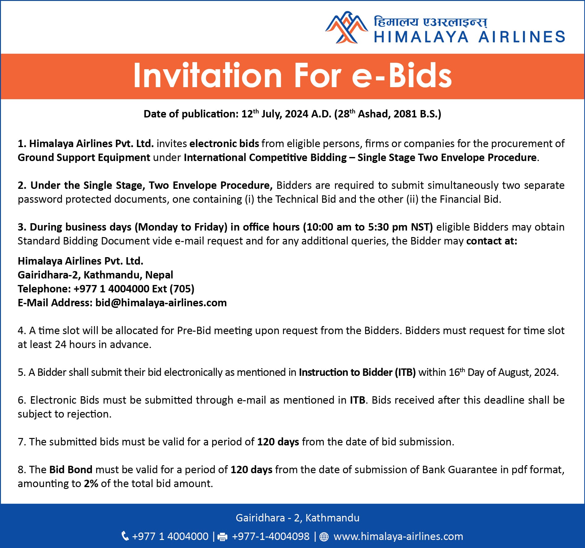 E-bidding Submission Deadline Extension
