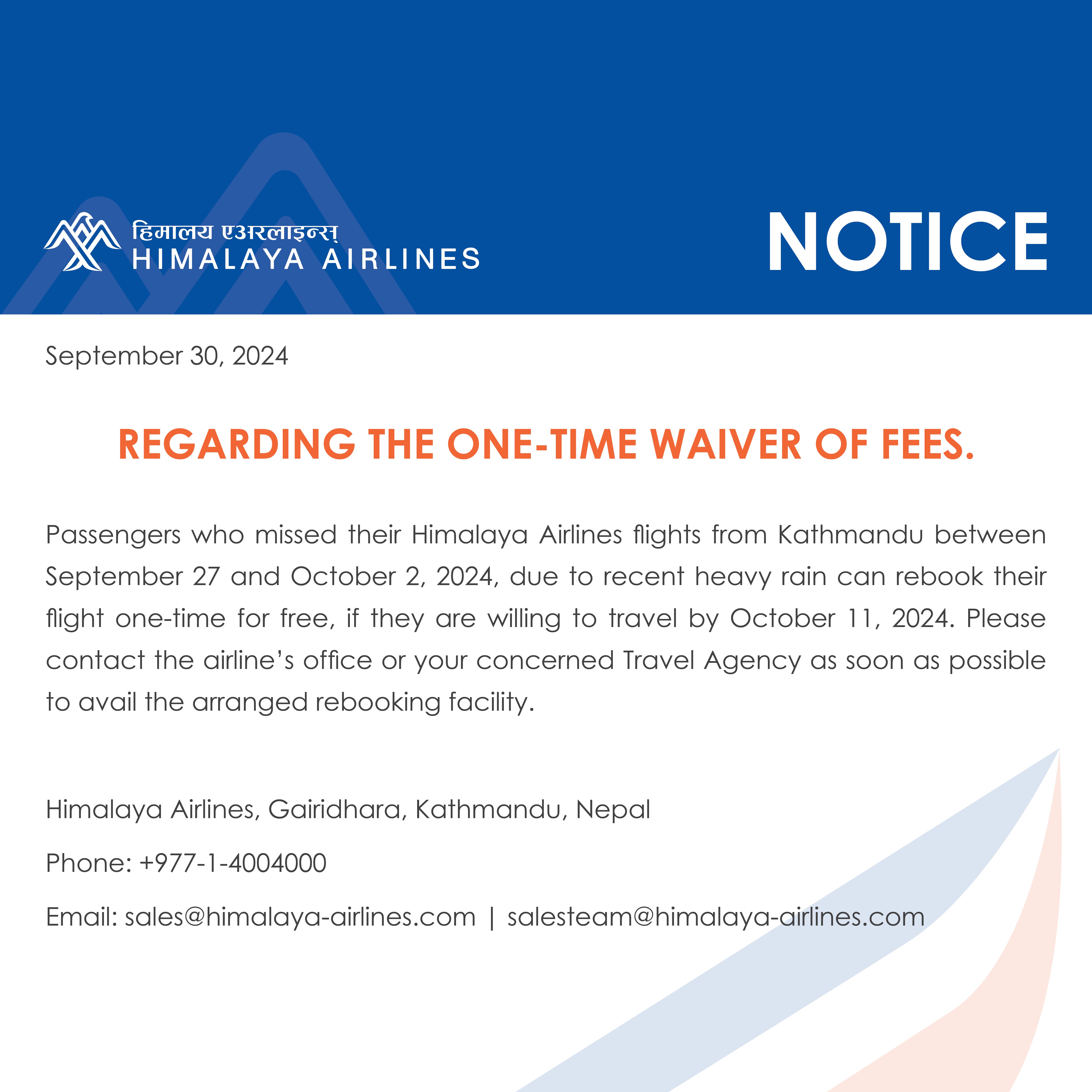 NOTICE REGARDING THE ONE-TIME WAIVER OF FEES