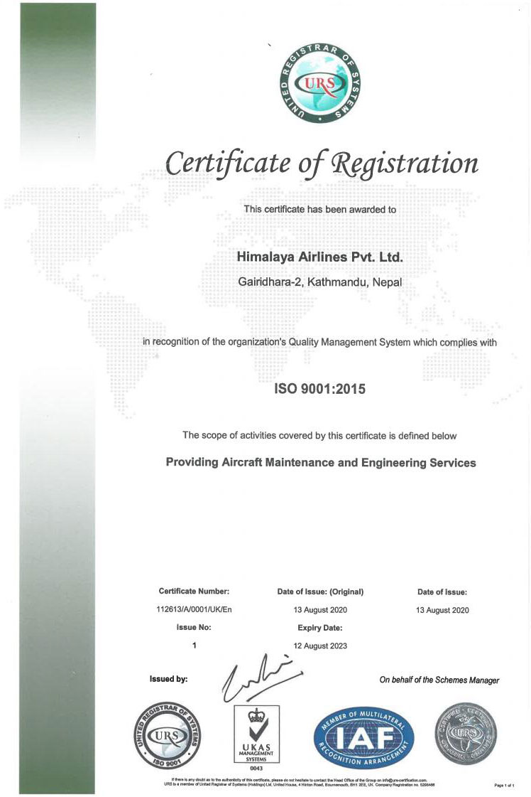Adhering to its key guiding principle of ‘Safety’, Himalaya Airlines,