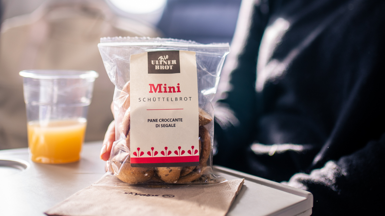With us, you don’t just enjoy South Tyrol through the window — you do so on board: we serve only carefully selected South Tyrolean products — from Schüttelbrot and creamy yogurt to a glass of local wine. Your flight is not only comfortable but delicious.